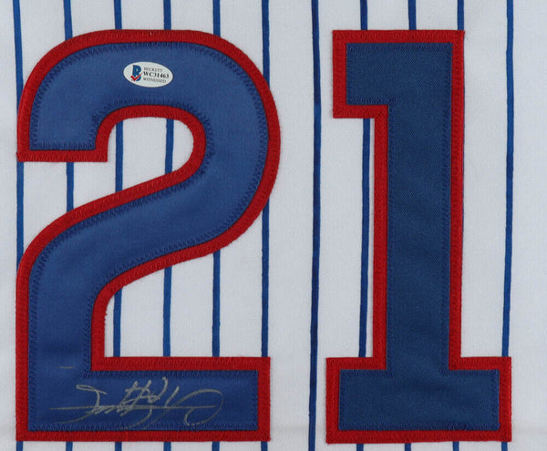Custom frame measures 35" x 43" in size and has been hand-signed by Sammy Sosa.The lot / autograph(s) includes an official Beckett Authentication Services serially numbered hologram for authenticity purposes. The signing of this item was witnessed by Beckett.Authentication: Beckett Hologram