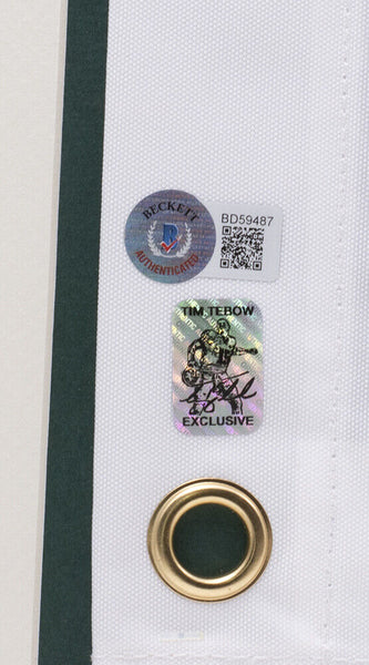 Featured is a Tim Tebow signed framed Tim Tebow Foundation Celebrity Golf Classic golf flag. This flag was hand signed by Tim Tebow and authenticated by Beckett authentication services. Included with the flag is a Beckett hologram and certificate of authenticity. Brand new professional framing featuring double matting and engraved nameplate. The frame measures approximately 20x30 in total size, and it is ready for display. This item would make a great addition to any sports memorabilia collection. SPECIFICATIONS Autographed By: Tim Tebow Team: Sport: Golf-PGA Authentication: Beckett Grading Services