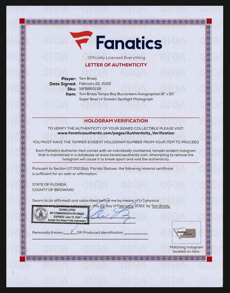 This is a Framed 16x20 Photo, approximately 24x28 with the frame, that has been hand signed by Tom Brady. This item has been certified authentic by Fanatics and comes with their tamper-proof stickerA and matching full-page certificate letter of authenticity.