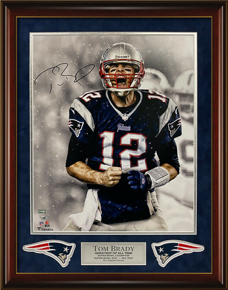 This 16x20 "Scream" photo custom framed to 20x24 has been personally hand-signed by Tom Brady of the New England Patriots100% AuthenticCertificate of Authenticity by Fanatics