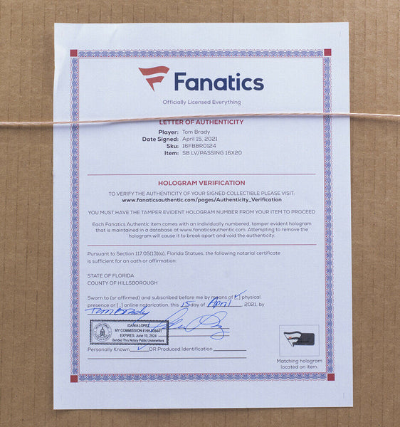 Featured is a Tom Brady signed framed 16x20 Tampa Bay Buccaneers photo. This photo was hand signed by Tom Brady and authenticated by Fanatics authentication services. Included with the photo is a Fanatics hologram and letter of authentication. This photo has been professionally framed and matted and measures approximately 22x27.. SPECIFICATIONS Autographed By: Tom Brady Team: Tampa Bay Buccaneers Sport: Football-NFL Authentication: Fanatics Authentic