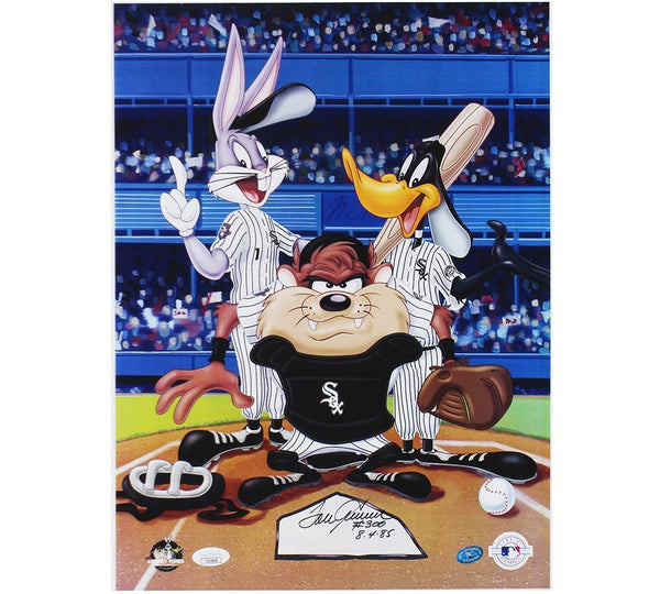 A Cincinnati Reds Unframed 12x17 Looney Tunes MLB Photo hand signed by Tom Seaver. The item and signature are in excellent condition. In addition to signing his name, Tom also inscribed "#300 8-4-85" on the item. Tom is a former professional baseball player who played 20 season in the MLB as a pitcher. AUTHENTICATION: The item is accompanied by a JSA Certificate of Authenticity - JSA Serial Numbered and Databased Hologram.