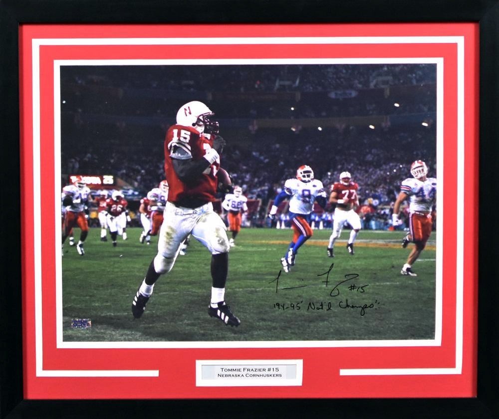 Tommie Frazier, former All-American quarterback for the Nebraska Cornhuskers, has hand signed this 16x20 photo at a private signing. It comes professionally framed in a black wood frame and double matted in Nebraska colors. This item comes with a certificate of authenticity (COA) from Signature Sports Marketing, one of the leaders in the industry. You will receive a paper COA along with matching serial-numbered holograms.Item pictured may not be the exact item you will receive. It will be similar quality, and we guarantee your satisfaction.