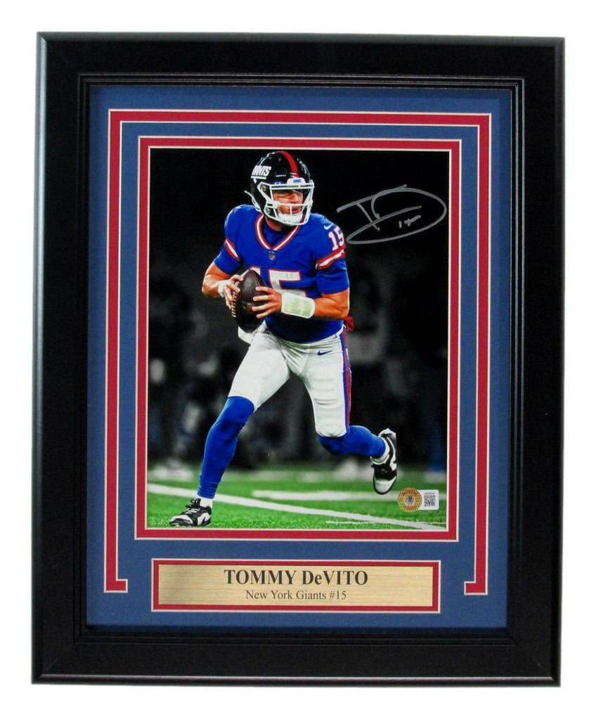 Tommy DeVito Autographed New York Giants 8x10 Photo Framed. The outer frame size is 13 inches x 16 inches. This photo is authenticated by Beckett and includes their Tamper-proof Hologram Sticker.