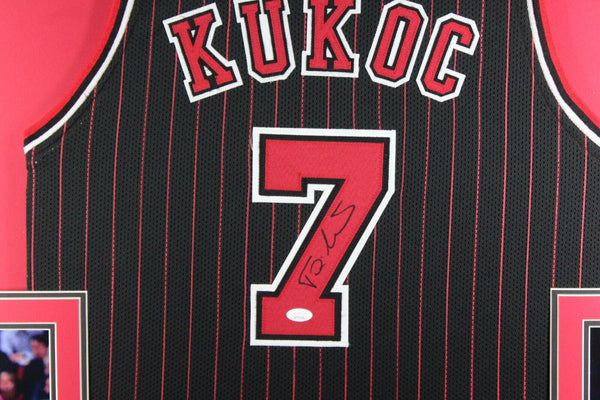 TONY KUKOC AUTOGRAPHED & PROFESSIONALLY FRAMED PRO-STYLE JERSEY(Occasionally our own stock pictures are used at times due to quantity of framing, all frames will look identical as the one pictured)THE FRAMED JERSEY MEASURES 35"x 44" & COMES WITH THE FOLLOWING:-UV Protected Acrylic-Triple Acid Free Team Colored Matting-2 High Quality 8"x10" Photos-Team LogoEvery framed autographed jersey is accompanied with a tamper-proof hologram on the signed part of the jersey from one of the main authenticators in the industry (JSA, Beckett, PSA, etc.) and can be verified on their corresponding websites to prove authenticity.
