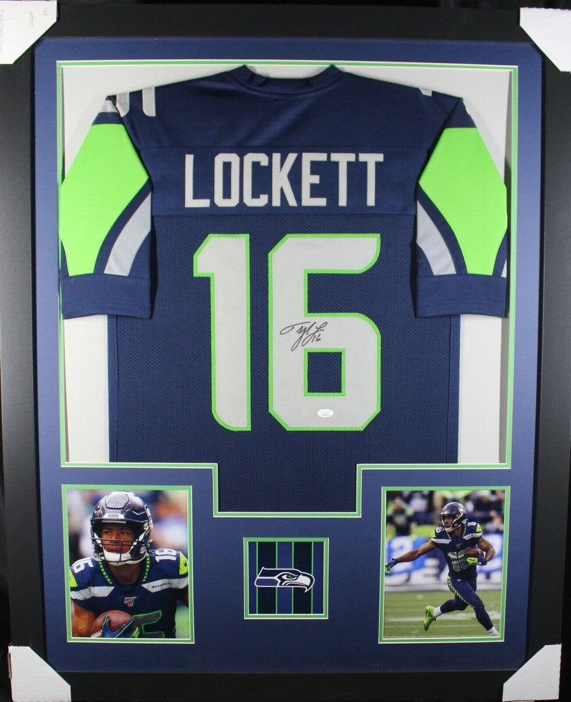 TYLER LOCKETT AUTOGRAPHED & PROFESSIONALLY FRAMED PRO-STYLE JERSEY(Occasionally our own stock pictures are used at times due to quantity of framing, all frames will look identical as the one pictured)THE FRAMED JERSEY MEASURES 35"x 44" & COMES WITH THE FOLLOWING:-UV Protected Acrylic-Triple Acid Free Team Colored Matting-2 High Quality 8"x10" Photos-Team LogoEvery framed autographed jersey is accompanied with a tamper-proof hologram on the signed part of the jersey from one of the main authenticators in the industry (JSA, Beckett, PSA, etc.) and can be verified on their corresponding websites to prove authenticity.