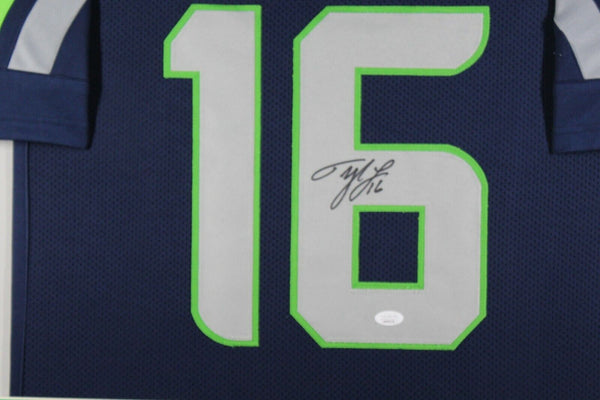 TYLER LOCKETT (Seahawks blue TOWER) Signed Autographed Framed Jersey JSA