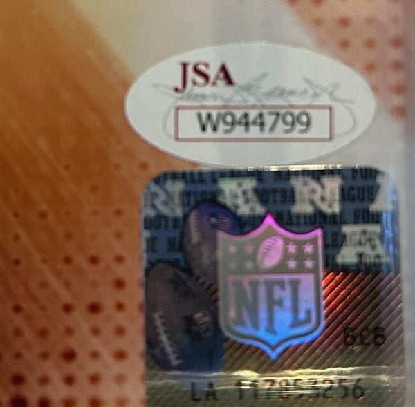 Capture a piece of football history with this elegantly framed (22"x26" outer dimensions) 16x20 photo celebrating the legendary quarterbacks of the Washington Redskins. The photo features the autographs and inscriptions of the iconic Redskins' players, including Joe Theismann, Sonny Jurgensen, Doug Williams, Billy Kilmer, and Mark Rypien, each adding their unique touch to this collector's item. The authenticity of the autographs is guaranteed by James Spence Authentication (JSA), ensuring that you own an original piece of sports memorabilia. This piece is perfect for any avid football fan or collector looking to add a touch of nostalgia to their collection.Celebrate the quarterback legends of the Washington Redskins with our exclusive Autographed 16"x20" Framed Photo. This framed masterpiece pays homage to the iconic quarterbacks who have left an indelible mark on the franchise and is a must-have for devoted fans and sports memorabilia enthusiasts. Hand-Signed by QB Legends: This framed photo proudly features the authentic signatures of FIVE Washington Redskins quarterback legends, symbolizing their remarkable contributions to the franchise and adding a personal touch to your collection. Washington Redskins Quarterback Legacy: Display your allegiance to the Washington Redskins with this autographed photo, showcasing the skill, leadership, and legacy of the quarterback legends who have graced the team. Professionally Framed: Meticulously designed and professionally framed, this 16"x20" photo is ready to take pride of place in your home, office, or sports-themed space. The framing enhances the overall aesthetic appeal and ensures the longevity of this classic piece. JSA Certificate of Authenticity: Your investment is protected by a James Spence Certificate of Authenticity, providing assurance that the autographs on the photo are genuine and personally signed by Washington quarterback legends. Perfect for NFL Fans: Whether you're a die-hard Washington supporter or a collector seeking a standout piece, this autographed framed photo is the ultimate addition to your sports memorabilia collection. Secure Shipping: Enjoy peace of mind with our secure and efficient shipping, ensuring that your autographed framed photo arrives in pristine condition. Limited Edition: With limited availability, this Washington Redskins QB Legends Autographed 16"x20" Framed Photo is a rare collector's item. Act swiftly to secure your piece of NFL history.