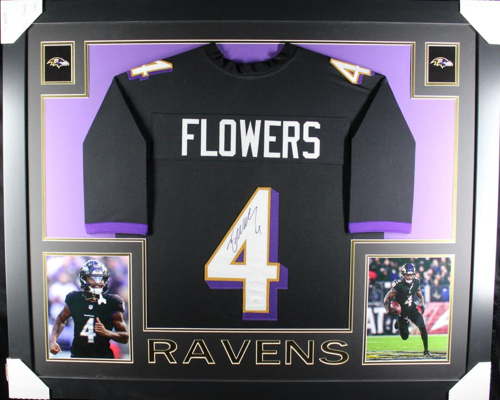 ZAY FLOWERS AUTOGRAPHED & PROFESSIONALLY FRAMED PRO-STYLE JERSEY(Occasionally our own stock pictures are used at times due to quantity of framing, all frames will look identical as the one pictured)THE FRAMED JERSEY MEASURES 35"x 44" & COMES WITH THE FOLLOWING:-UV Protected Acrylic-Triple Acid Free Team Colored Matting-2 High Quality 8"x10" Photos-Team LogoEvery framed autographed jersey is accompanied with a tamper-proof hologram on the signed part of the jersey from one of the main authenticators in the industry (JSA, Beckett, PSA, etc.) and can be verified on their corresponding websites to prove authenticity.