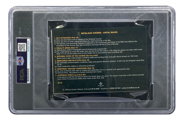 Featured is a Jack Nicklaus signed St. Mellion Estate scorecard. This card has been hand signed by Nicklaus and has been authenticated and encapsulated by PSA. This card would make a great addition to any sports memorabilia collection!. SPECIFICATIONS Autographed By: Jack Nicklaus Team: Sport: Golf-PGA Authentication: Professional Sports Authenticator (PSA)
