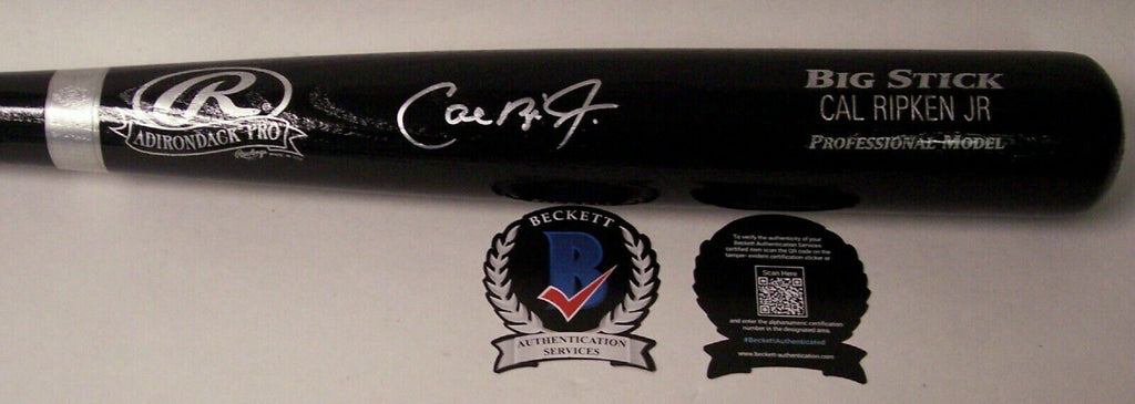 This Rawlings Black Big Stick Baseball Bat has been hand signed by Cal Ripken Jr. & features his name engraved on the barrel of the bat. The Baseball Bat will include the Beckett Authentication sticker affixed to the bat and a Certificate of Authenticity from Beckett Authentication.