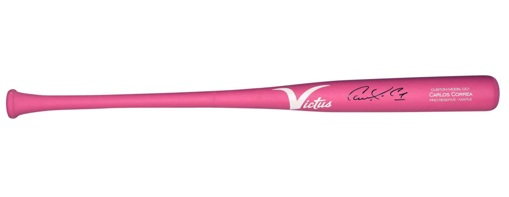 Carlos Correa, All-Star shortstop for the Minnesota Twins, has hand signed this pink Victus game model bat at a private signing. This item comes with a certificate of authenticity (COA) from Beckett Authentication Services and was signed in the presence of one of their representatives. You will receive a serial-numbered COA along with a matching serial-numbered sticker on the bat. The authenticity can be verified online by entering the serial number.Item pictured may not be the exact item you will receive. It will be similar quality, and we guarantee your satisfaction.