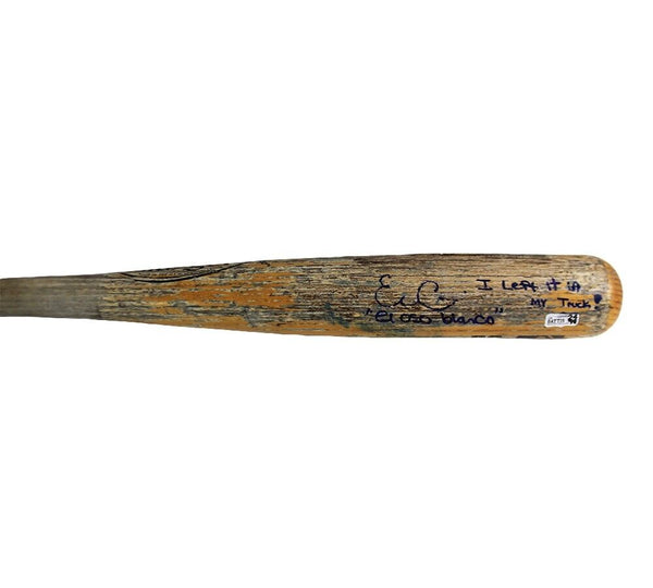 An Atlanta Braves Game Used Blonde MLB Bat hand signed by Evan Gattis. The item is used with many signs of age and use. In addition to signing his name, Evan also inscribed "El Oso Blanco" & "I Left it in My Truck" on the item. Evan was a powerhouse while playing for the Braves - hitting a total of 43 home runs. AUTHENTICATION: The item is accompanied by an Evan Gattis Exclusive Serial Numbered & Databased Hologram