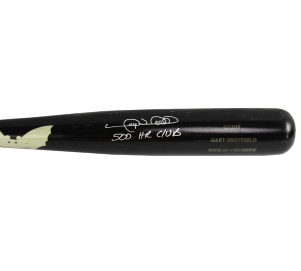 A New York Yankees SAM Black MLB Bat hand signed by Gary Sheffield. The item and signature are in excellent condition. In addition to signing his name, Gary also inscribed "500 HR Club" on the item. Gary is a 9x All Star, a World Series champion, and a 5x winner of the Silver Slugger Award. AUTHENTICATION: The item is accompanied by a JSA Certificate of Authenticity - JSA Serial Numbered & Databased Hologram