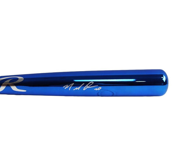 An Atlanta Braves Rawlings Blue Chrome MLB Bat hand signed by Marcell Ozuna. The item and signature are in excellent condition. Marcell is an outfielder. He is a 3x MLB All-star (2016, 2017, 2024), Golden Glove Award winner (2017), and 2x Silver Slugger Award winner (2017, 2020). AUTHENTICATION: Your item is tagged with a SmarTag powered by Prova Technology, which gives you digital access to your items authentication records, which includes a proof picture from the signing.