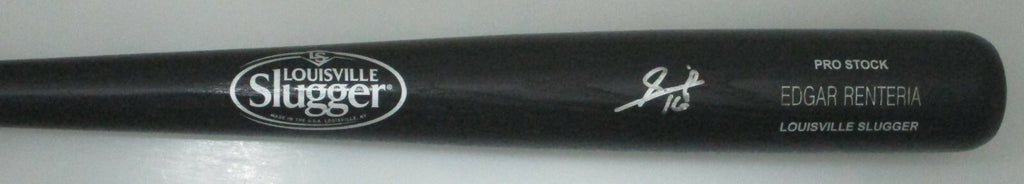 A hand signed Louisville Slugger Name Engraved bat of Florida Marlins & San Francisco Giants infielder EDGAR RENTERIA. The signature is in Silver paint pen. This item was signed at a private signing with us. This would make a great addition to any Renteria, Marlins or Giants collection! This autograph is guaranteed to be 100% authentic and will include a Beckett Authentication COA sticker with databased serial number.