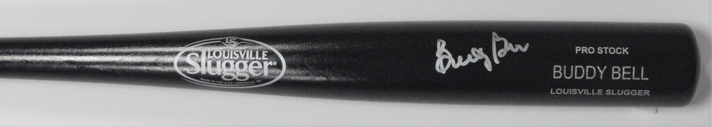 An official Louisville Slugger Name Engraved autographed Bat by Texas Rangers Infielder BUDDY BELL. Signature is in Silver paint pen. This would make a great addition to any RANGERS or INDIANS collection! This item is guaranteed to be 100% authentic and will include a COA from JSA authentication.