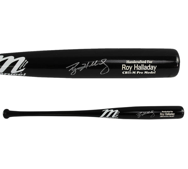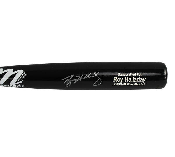 A Philadelphia Phillies Marucci Black MLB Bat hand signed by Roy Halladay. The item and signature are in excellent condition. Roy is a former professional baseball player. He pitched for the Toranto Blue Jays and the Philadelphia Phillies. In 2010 he pitched a perfect game. He retired in 2013 and died in a plane crash in 2017. AUTHENTICATION: The item is accompanied by a JSA Letter of Authenticity - JSA Serial Numbered & Databased Hologram