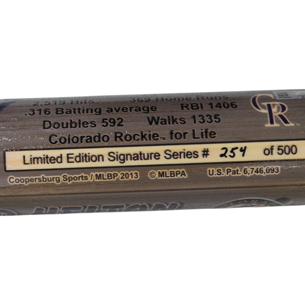 The number in the listing title is just an inventory sku for our records and is not the authentication number. The item pictured is the exact item you will receive, please see photos for condition. This is a Colorado Rockies Limited Edition /500 Baseball Bat that was personally autographed by Todd Helton. Includes a certificate of authenticity from Beckett Authentication Services (BAS) and Denver Autographs.FREE SHIPPING within the USA on orders over $10!
