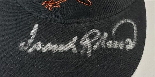 This autographed hat has been personally hand-signed by Frank Robinson of the Baltimore Orioles.This autograph is certified by James Spence Authentication (JSA). It comes with the numbered hologram and matching Certificate of Authenticity.