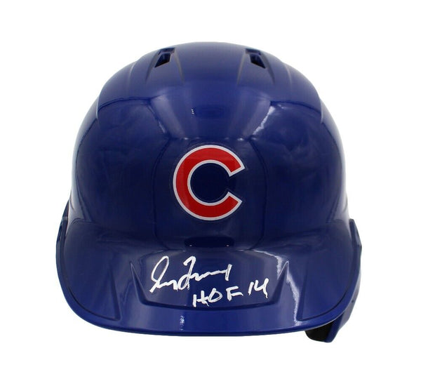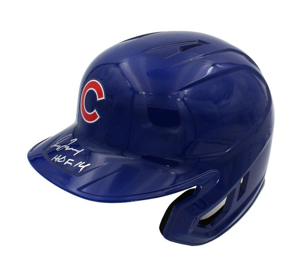 A Chicago Cubs Rawlings Match Pro MLB Helmet hand signed by Greg Maddux. The item and signature are in excellent condition. In addition to signing his name Greg also inscribed "HOF 14" on the item. Greg is an American college baseball coach and former MLB pitcher. He is the pitching coach at the University of Nevada, Las Vegas. Maddux is best known for his accomplishments while playing for the Atlanta Braves and the Chicago Cubs. With the Braves, he won the 1995 World Series over the Cleveland Indians. AUTHENTICATION: Your item is tagged with a SmarTag powered by Prova Technology, which gives you digital access to your items authentication records, which includes a proof picture from the signing.