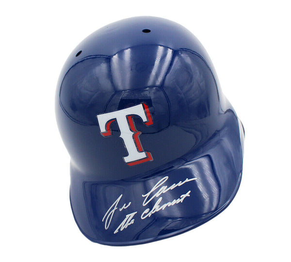 An Texas Rangers Rawlings Current MLB Helmet hand signed by Jose Canseco. The item and signature are in excellent condition. In addition to signing his name, Jose also inscribed "The Chemist" on the item. Jose is a former MLB outfielder. He is a Rookie of the year, 2x World Series Champion, 6x All-Star & a 4x Silver Slugger Award winner. AUTHENTICATION: The item is accompanied by a Certificate of Authenticity - Serial Numbered and Databased Hologram - Picture of Jose from the signing