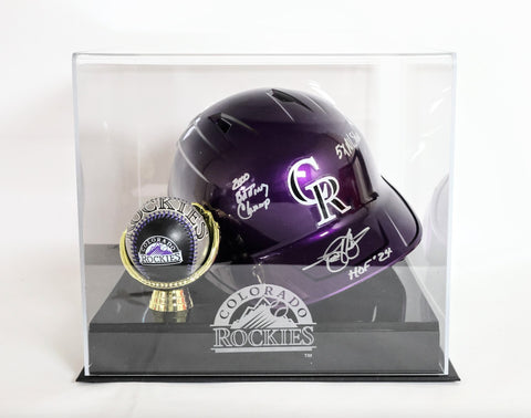 Chicago Cubs full-size replica batting helmet. Hand-signed by Moises Alou.While Alou had a decent career as a North-Sider, he's best remembered for "The Steve Bartman Play" In 2003, the Cubs won the NL Central and beat the Atlanta Braves in the NLDS for their first postseason win since 1908. Advancing to the NLCS to face the Florida Marlins (for the right to play in the 2003 World Series) the Cubs held three games to two lead in the best of 7 series heading into Game 6. In the eighth inning of Game 6, with Chicago ahead 3-0, several spectators attempted to catch a foul ball off the bat of Marlins second baseman Luis Castillo. One of the fans, Steve Bartman, reached for the ball, deflecting it and disrupting a potential catch by Cubs outfielder Moises Alou. If Alou had caught the ball, it would have been the second out in the inning and the Cubs would have been just four outs away from winning their first N.L. Pennant since 1945. Instead, the Cubs ended up surrendering eight runs in the inning and losing the game, 8-3. When they were eliminated in the seventh game the next night, the incident was seen as the first Domino in the turning point of the series. The Cubs Curse would continue until 2016 when the Cubs won the World Series for the 1st time in 108 years,The autograph(s) includes an official Schwartz Sports Hologram and matching COA for authenticity purposes.Authentication: Schwartz Sports COA