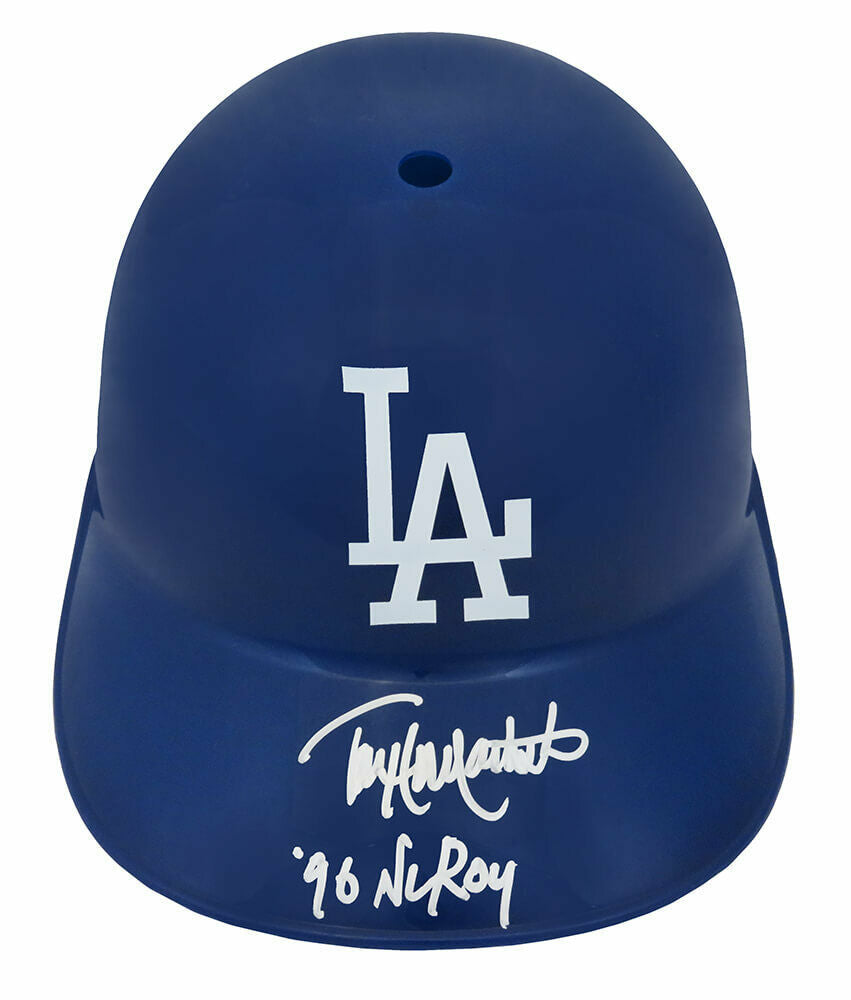 Todd Hollandsworth signed Los Angeles Dodgers souvenir replica baseball batting helmet with 'NL ROY 96' inscription. Item comes with a Schwartz Sports Memorabilia tamper-proof numbered hologram and Certificate of Authenticity which can be verified online.