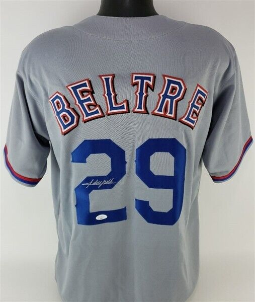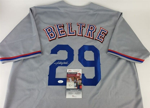 This autographed jersey has been personally hand-signed by Adrian Beltre of the Texas Rangers. This autograph is certified by James Spence Authentication (JSA). It comes with the numbered hologram and matching Certificate of Authenticity.Custom on-field style jerseys are a more affordable option for autograph seekers. These jerseys do not have any brand name or tags and are made in the Philippines. They feature stitched on names and numbers and are made to look very similar to the on-field jerseys that the players wear. These custom jerseys are very commonly used in the memorabilia industry.