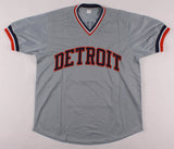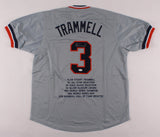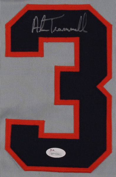 Custom on field style jersey. Everything is sewn on, size XL. Has been hand-signed in silver paint pen by Alan Trammell (HOF). Trammell's career highlights have been custom stitched onto the back of the jersey below the reverse numbers. The lot / autograph(s) includes an official James Spence Authentication (JSA) hologram and matching COA for authenticity purposes. The signing of this item was witnessed by JSA.Authentication: JSA COA