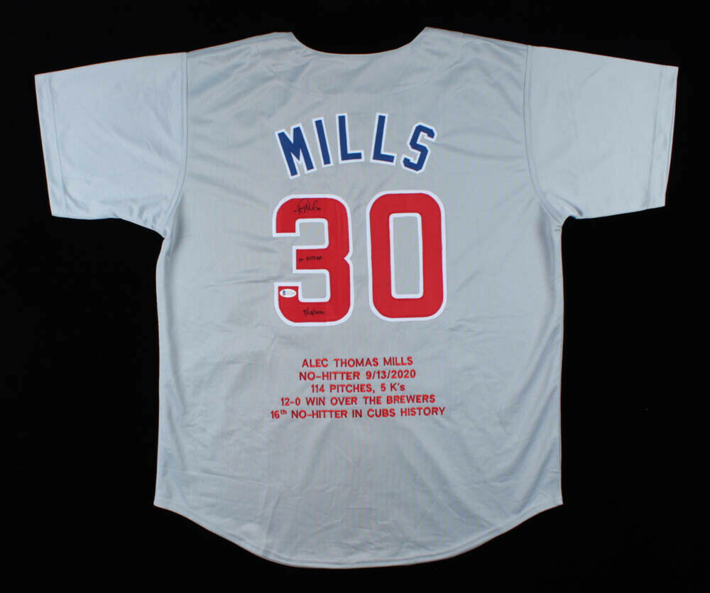 Alec Mills Signed Chicago Cub Highlight Stat Jersey Inscibd "No Hitter 9/13/202"