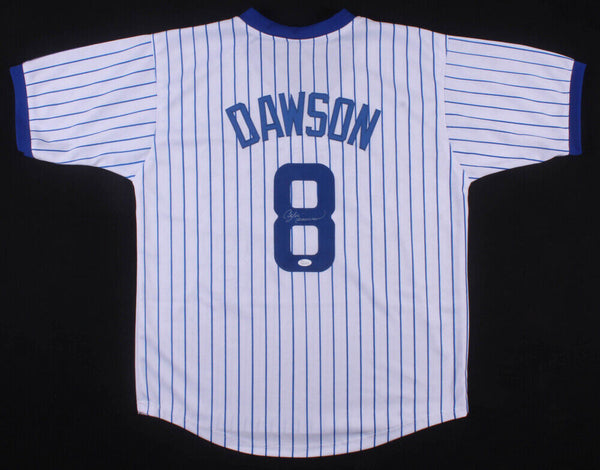 Custom on-field style jersey. Everything is sewn on, size XL. Hand-signed in silver paint pen by Andre Dawson (Expos, HOF). The lot / autograph(s) includes an official James Spence Authentication (JSA) hologram and matching COA for authenticity purposes. The signing of this item was witnessed by JSA.Authentication: JSA COA