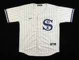 Custom on-field Nike style 1919 Throwback jersey. Everything is sewn on, size adult XL. Hand-signed by Andrew Vaughn.The lot / autograph(s) includes an official James Spence Authentication (JSA) hologram and matching COA for authenticity purposes.Authentication: JSA COA