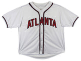 This Autographed w/ Silver Signature White Pro Style Jersey has been Personally Signed by Andruw Jones of the Atlanta Braves. This item is 100% Authentic to include a hologram by Beckett Authentication Services. This item will come with an affixed Beckett Authentication Services (BAS) authentication sticker, which includes a scannable QR code to verify authenticity. Please note that Beckett no longer provides serial-numbered COA cards, and the attached BAS sticker will serve as the complete authentication for this item. We conducted an autograph signing with Andruw Jones where multiples of the same item were signed. While the photographs are representative of this item, the size, placement and strength of the signature may vary. Each item is hand signed, therefore, each autograph is unique. This item can be verified through BAS. This is a X-Large sized, non-branded, custom-stitched Jersey.