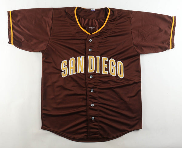 Custom on-field style jersey has everything sewn on, size XL. Hand-signed by Andy Benes. The autograph includes an official Beckett Authentication Services serially numbered scannable hologram and QR Code card for authenticity purposes.Authentication: Beckett Scannable Hologram with QR Code card