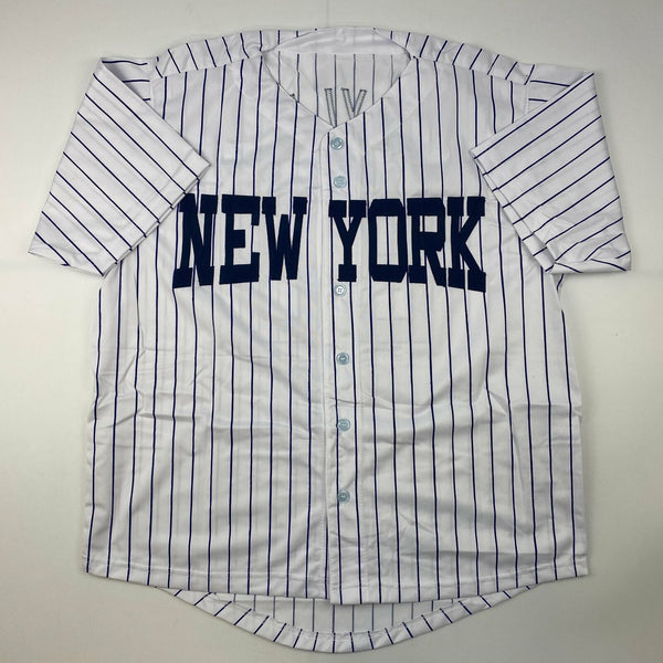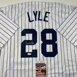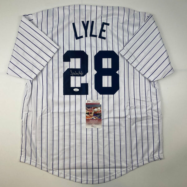 Autographed/Signed Sparky Lyle New York Pinstripe Baseball Jersey JSA COA Jersey has no brand names or logos. This is a custom jersey and was not manufactured by or in any manner associated with any professional sports league or manufacturer. This custom jersey carries no professional sports league designation. The item is intended to be an autographed collectible. The custom jersey displays the name and number of the player. This item in no way is affiliated with or connected to any professional sports organization. Size is XL.
