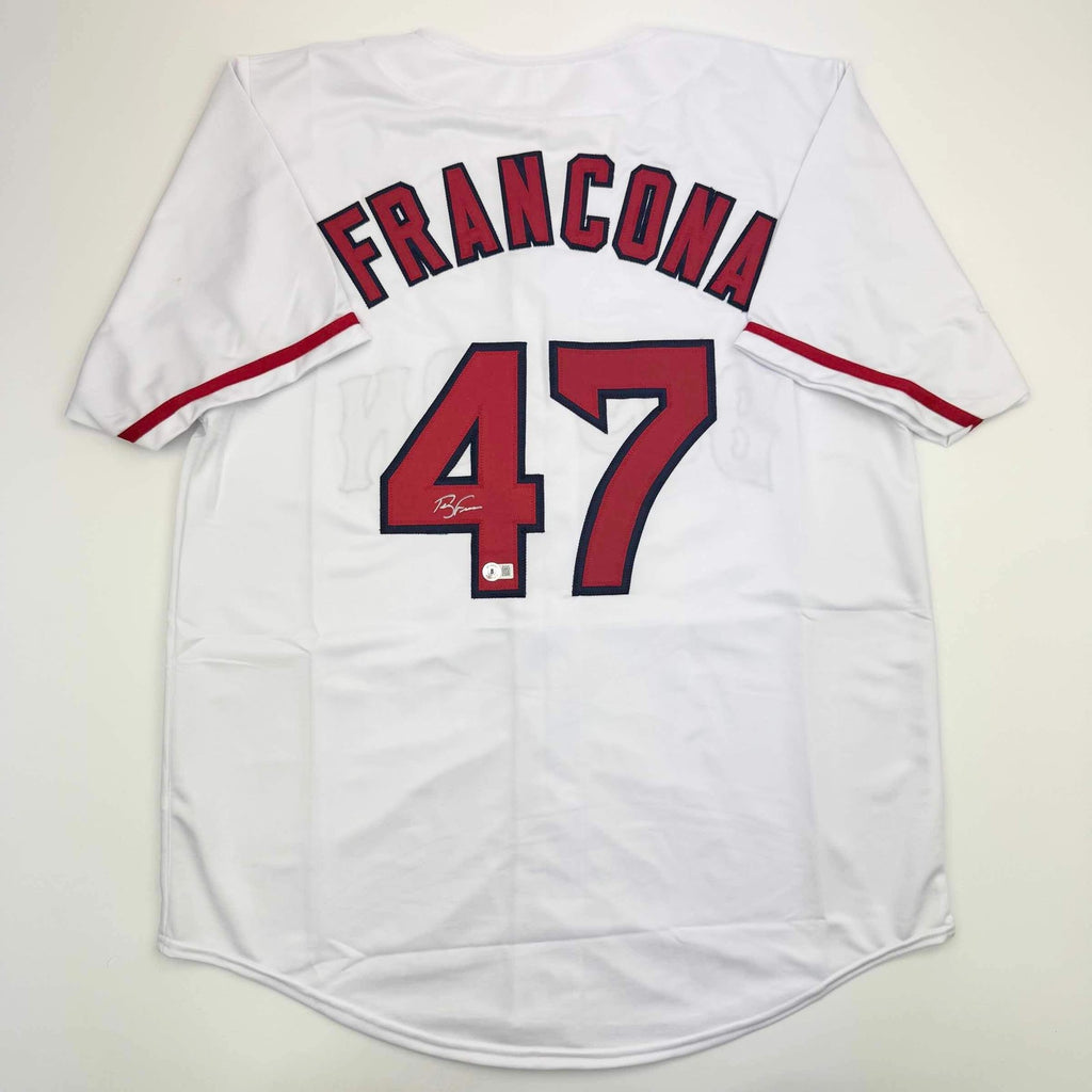 Autographed/Signed Terry Francona Boston White Baseball Jersey Beckett BAS COA Jersey has no brand names or logos. This is a custom jersey and was not manufactured by or in any manner associated with any professional sports league or manufacturer. This custom jersey carries no professional sports league designation. The item is intended to be an autographed collectible. The custom jersey displays the name and number of the player. This item in no way is affiliated with or connected to any professional sports organization. Size is XL.