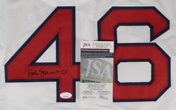 This autographed custom on-field style adult XL jersey has been personally hand-signed by Bob Stanley of the Boston Red Sox. This autograph is certified by James Spence Authentication (JSA) Witnessed Protection Program. That means that a JSA representative was present when this item was signed. It comes with the numbered hologram and matching Certificate of Authenticity.Custom on-field style jerseys are a more affordable option for autograph seekers. These jerseys do not have any brand name or tags and are made in the Philippines. They feature stitched on names and numbers and are made to look very similar to the on-field jerseys that the players wear. These custom jerseys are very commonly used in the memorabilia industry.
