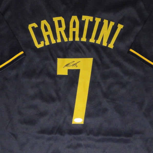 Custom replica jersey of Milwaukee Brewers Catcher VICTOR CARATINI. This jersey is signed with Black Paint Pen and is size XL with all letters and numbers sewn in. This item was signed at a private signing in our store and would make a great addition to any Brewers collection. This autograph is guaranteed to be 100% authentic and will include a COA from JSA (James Spence Authentication).