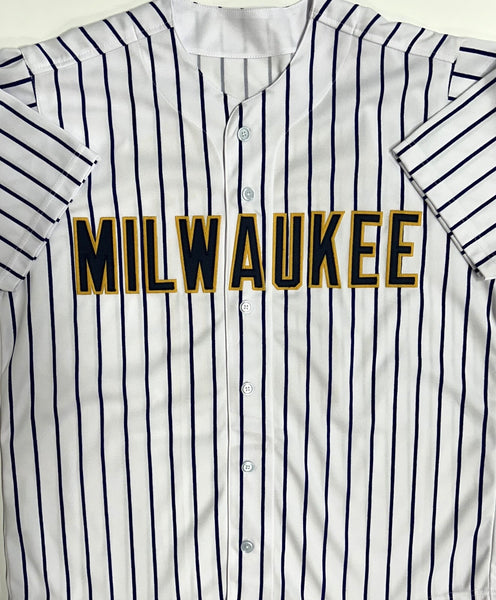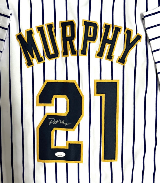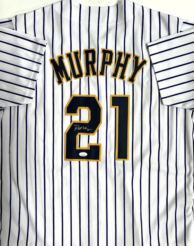 Custom Replica Jersey by Milwaukee Brewers Manager PAT MURPHY. This jersey is signed with Silver paint pen. This jersey is size XL with all letters and numbers sewn in. This item was signed at a private signing and would make a great addition to any BREWERS collection. This autograph is guaranteed to be 100% authentic and will include a COA from JSA authentication.