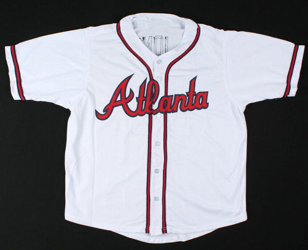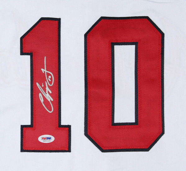 Custom on-field style jersey. Everything is sewn on, size XL. Hand-signed in black paint pen by Chipper Jones. The lot / autograph(s) includes an official PSA/DNA hologram and matching COA for authenticity purposes.Authentication: PSA COA
