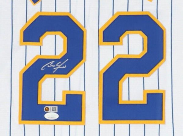 On-field style jersey. Everything is sewn on, size XL. Hand-signed by Christian Yelich.The lot / autograph(s) includes an official James Spence Authentication (JSA) hologram and matching COA, as well as a Christian Yelich hologram and COA from USA Sports Marketing for authenticity purposes. This signing was witnessed by JSA.Authentication: JSA COA & Christian Yelich COA