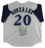 D-Backs Luis Gonzalez "Career Stat" Signed Majestic Coolbase Jersey BAS Witness