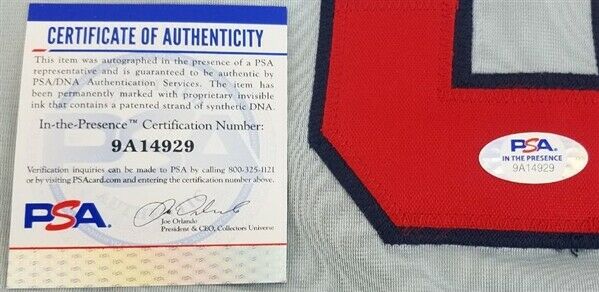 Custom on-field style jersey. Everything is sewn on, size XL. Has been hand-signed in black Sharpie pen by Dale Murphy. The lot / autograph(s) includes an official PSA/DNA hologram and matching COA for authenticity purposes. The signing of this item was witnessed by PSA.Authentication: PSA COA