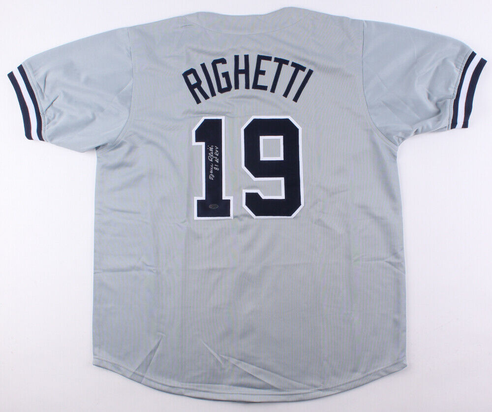 Custom on-field style jersey. Everything is sewn on, size XL. Hand-signed and inscribed by Dave Righetti.The lot / autograph(s) includes an official Leaf hologram and matching COA for authenticity purposes.Authentication: Leaf COA