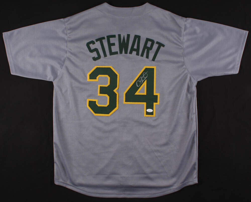 Custom on-field style jersey. Everything is sewn on, size XL. Hand-signed in black felt-tip pen by Dave Stewart. The lot / autograph(s) includes an official James Spence Authentication (JSA) hologram and matching COA for authenticity purposes. The signing of this item was witnessed by JSA.Authentication: JSA COA