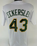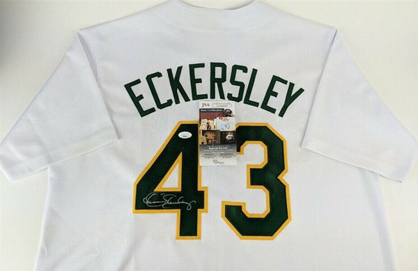 Custom on-field style jersey. Everything is sewn on, size XL. Hand-signed in silver felt-tip pen by Dennis Eckersley (Boston Red Sox, Chicago Cubs, Oakland Athletics, Cleveland Indians, St. Louis Cardinals, HOF). The lot / autograph(s) includes an official James Spence Authentication (JSA) hologram and matching COA for authenticity purposes. The signing of this item was witnessed by JSA.Authentication: JSA COA
