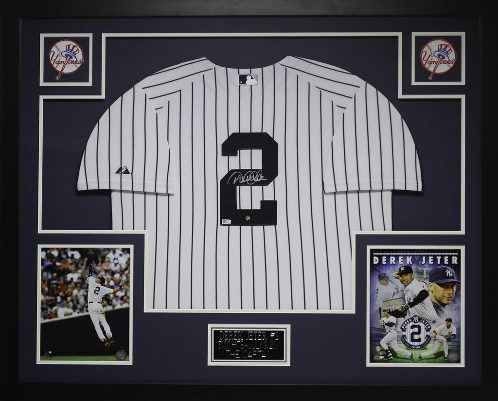 Derek Jeter Autographed and Framed White Pinstriped Jersey