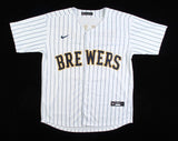 Custom on-field Nike style jersey. Everything is sewn on, size adult XL. Hand-signed in silver paint pen by Devin Williams (Milwaukee Brewers). The lot / autograph(s) includes an official James Spence Authentication (JSA) hologram and matching COA for authenticity purposes.Authentication: JSA COA