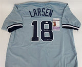 Custom on-field style jersey. Everything sewn on, size XL. Hand-signed in silver paint pen by Don Larsen. The lot / autograph(s) includes an official James Spence Authentication (JSA) hologram and matching COA for authenticity purposes. Authentication: JSA COA